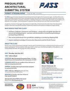 The PASS program has been designed to streamline permitting throughout the Sacramento region. It will provide a more efficient and effective plan review process by implementing a clear and concise set of standards for document content and organization. Participation is voluntary, and requires a half-day training class. Future classes will include annual updates and expansion of the program. The initial program is targeted at Tenant Improvements and Small Commercial Projects. Jurisdictions involved in the program development included: Cities of Sacramento, Roseville, Folsom, West Sacramento and Davis; Counties of Sacramento and Placer. Additional jurisdictions are expected to adopt the program shortly.